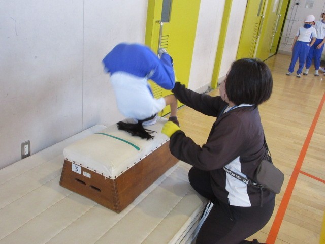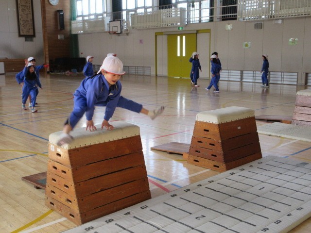 跳び箱運動も,回数を重ねるたびに,できる技が増えたり,跳べる段が高くなったりと,どんどん上達しています。意欲いっぱいの3年生です。