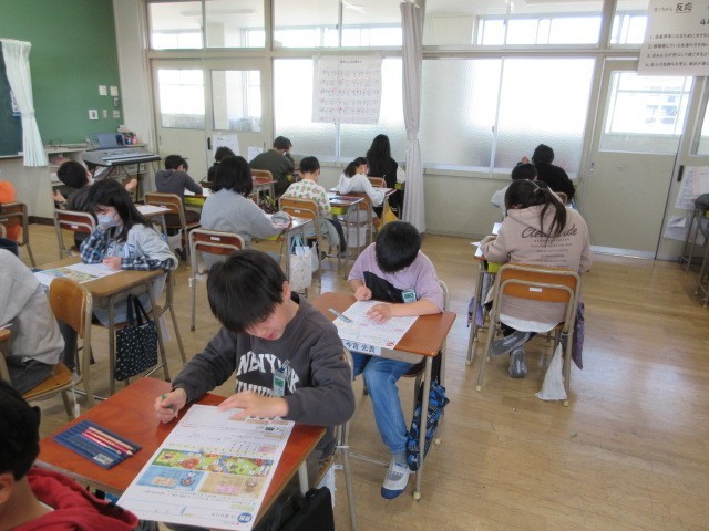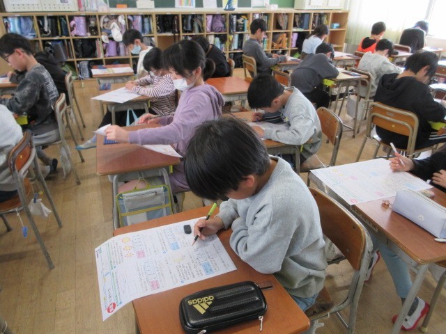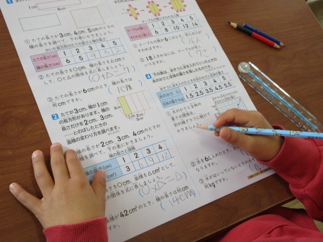 算数科「変わり方」の学習が終わり,今日は,テストが行われています。図や表をよく見て,問題に真剣に取り組んでいます。