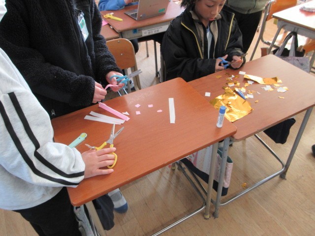 お世話になった6年生に感謝の気持ちを伝える「お別れ集会」に向けて,飾り付けの準備や出し物の練習をはじめました。3クラス合同で役割を分担し,自分の役割に責任をもって取り組んでいます。