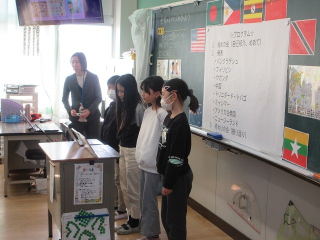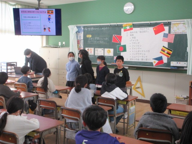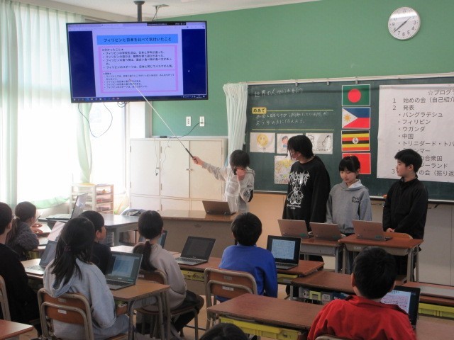 4年生の学習参観の様子です。4年生は,総合的な学習の時間「世界の人々とふれ合おう」の中で,外国の方々などから聞いたいろいろな国の様子について,グループごとにプレゼンテーションを使って発表しました。