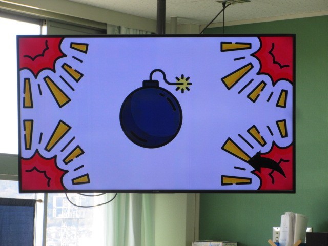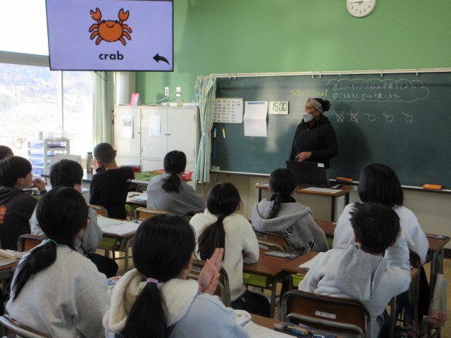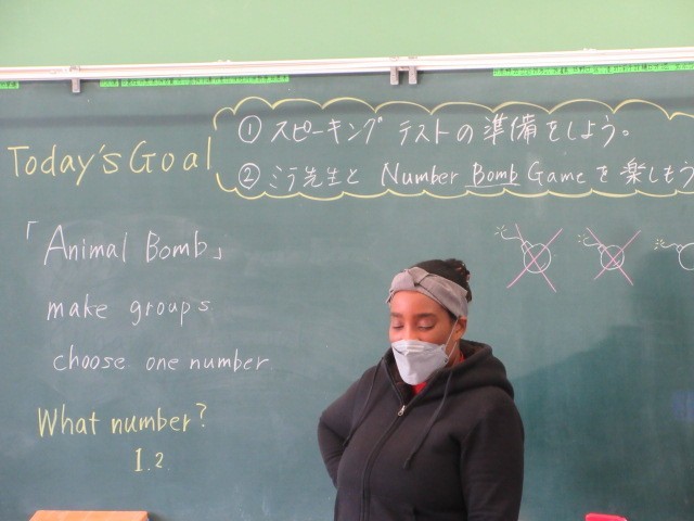 ジャミーラ先生と一緒に,「Animal Bomb.」という英語のゲームを楽しんでいます。数字や動物の英語表現のおさらいです。