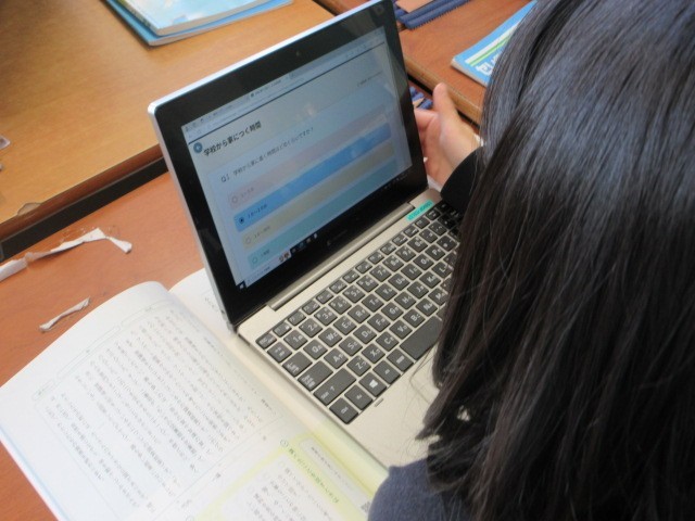 「調べて話そう生活調査隊」は,生活に関する疑問をグループで調査して,みんなに発表する国語科の学習です。タブレットを使って,クラスのみんなにアンケートをとり,その結果をもとにまとめています。