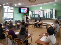 グループ対抗の英語でのクイズ大会がありました。協力して答えを黒板に書いていきまし...
