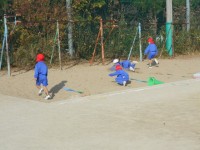 砂場に障害物(段ボール等)を置き、より遠くまでジャンプするような場の工夫がしてありました。子どもたちは、意欲的にチャレンジしています。