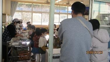 給食参観を実施しました。栄養士による食に関する講話には、20名ほどの方に参加していただきました。その後の参観にも、多くの方に給食の様子を見ていただくことができました。いつもとは異なる雰囲気の中、嬉しそうに食べる姿や恥ずかしそうに食べる姿も見られました。保護者の皆様には、現在の給食の様子を見ていただくことができたと思います。ありがとうございました。