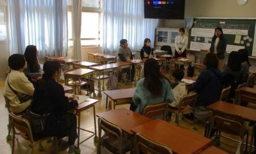 学習参観では、特に低学年で、この1年間でできるようになったことを発表する形式の授業がありました。一人一人練習してきた成果を実際にやって見せ、発表していました。他にも中学年では、将来の夢やこれから頑張りたいこと等を発表している学級もありました。プレゼンテーションを使って発表を工夫している学級もありました。また、国語や算数などの授業で成長を見せてくれた学級、体育で体力の高まりを親子でふれ合いながら測定する学級もありました。どの教室でも保護者の方々が見守る中、真剣に取り組む子どもたちの姿がありました。