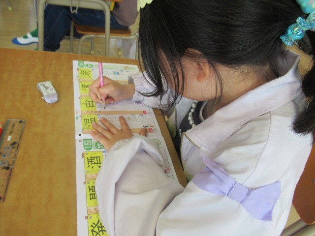 漢字学習では、新出漢字を丁寧に漢字ドリルになぞっていました。