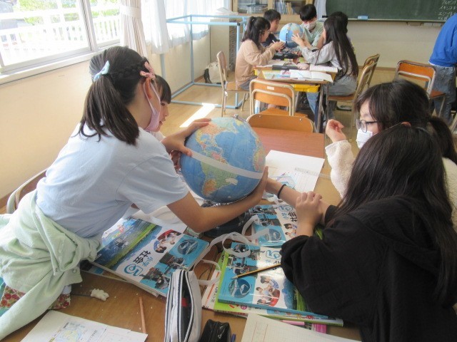 5年生は社会科で「緯度」「経度」「緯線」「経線」などの学習を行っています。