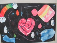 6年生は図画工作科の学習中です。単元名は「音の絵」つまり、音から連想して絵を描く...