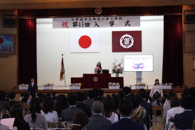 保護者や地域の皆様、在校生代表としての6年生、教職員に見守られながら、新一年生が入学しましたよ。入学式にも落ち着いて臨んでいました。