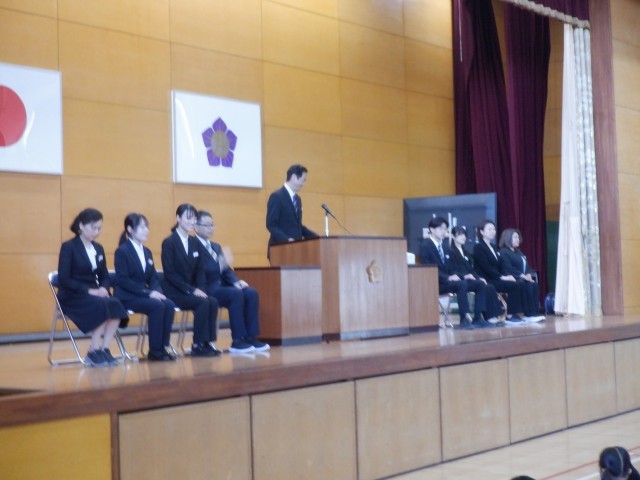 赴任式では新たに赴任された先生方をお迎えし、始業式では校長から今年度の重点目標