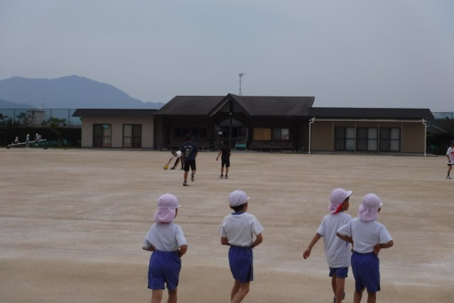 朝の会後に、次々に外に出てきて、鬼ごっこやドッジボールなどを楽しむ子がたくさん見られました。