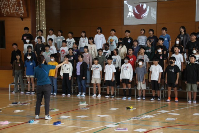 10月23日校内音楽発表会、25日保護者向け音楽発表会が近づき、各学年の練習に力が入っています。今年は歌声指導に地域にお住いの木村先生にご指導をいただいています。先生の明るくパワフルなご指導で、子供たちの歌声がどんどん良くなっています。6年生にとっては最後の音楽発表会になります。「さすが6年生!」と言ってもらえるように、学年心を一つに歌声をつくっていました。