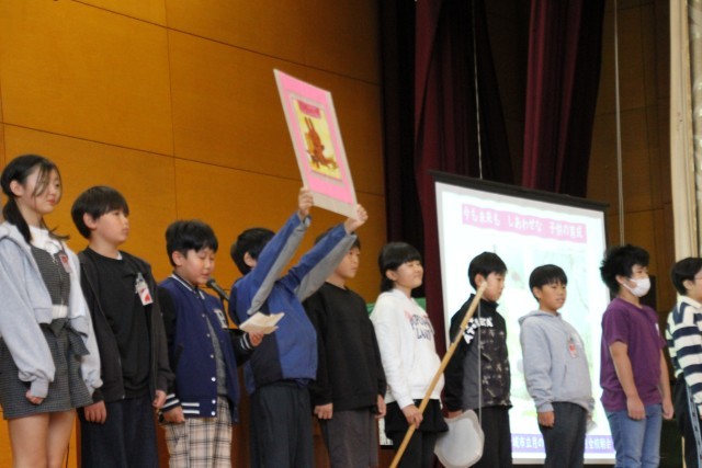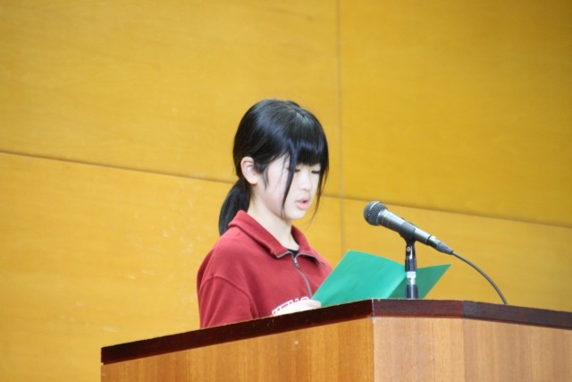 6年生の代表児童には、11月2日にまどかぴあホールで行われた「心の教育フェスティバル」で学校代表とせて発表した作文を読んでもらいました。身近な出来事から、生き物や環境について深く考えたことについて立派な内容を発表してくれました。