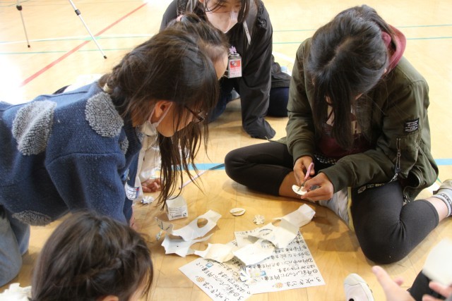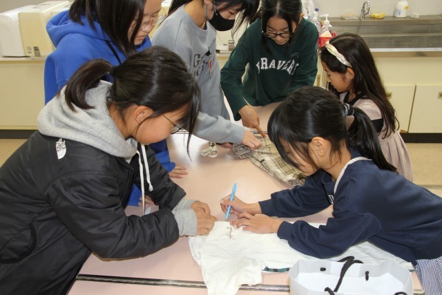 6年生は総合的な学習の時間でSDGsについて学習しています。SDGsの17項目の中から自分で興味関心や取り組んでみたいことをもとに選んでいます。調べて分かったことをまとめたり、自分たちにできることに取り組んでいます。その中で、Tシャツをポーチにする活動と、牛乳パックでおもちゃづくりを全校に呼びかけ、6年生が下級生に教えました。参加した子供たちは、できあがったポーチやぴょんぴょんカエルなどのおもちゃに喜んでいました。