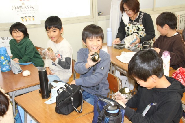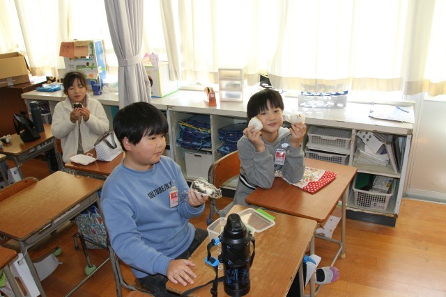 「市民総ぐるみ防災訓練」の日に合わせて、弁当(おにぎり)の日を実施しました。弁当は「おにぎり」のみ。具やおかずをぱんぱんに詰め込んで持ってきた子供たちが多かったようです。中学年くらいになると自分でおにぎりを作ってくる子が多く、高学年はほぼ自分で作っているようでした。自分が作ったおにぎりをおいしそうに頬張る子供たちでした。