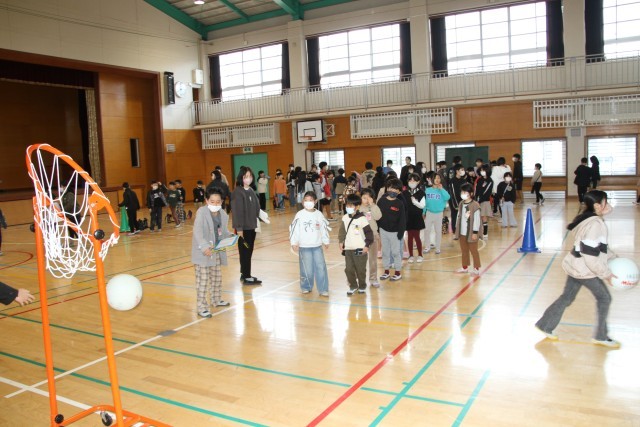 集会委員会の企画で毎年縦割り集会を行っています。5・6年生がリーダーとなって準備されている様々なゲームを相談しながら縦割りグループで回ります。中にはグループで協力しないとクリアできないものもあり、お互いに声をかけながら協力する姿がたくさん見られました。異年齢で遊ぶことが減ってきている子供たちにとって、貴重な経験になったと思います。