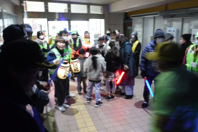 PTAボランティアと地域の合同パトロールが行われました。18時になると外は真っ暗。パトロールには春日警察署や市役所生活安全課の方々や子供たちもたくさん参加してれました。子供たちには防犯の提灯や、拍子木が渡され、「火の用心!」と声をかけながら地域をパトロールしました。