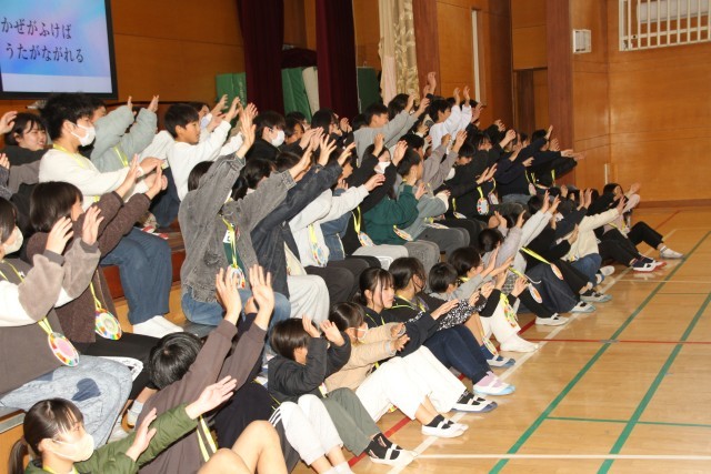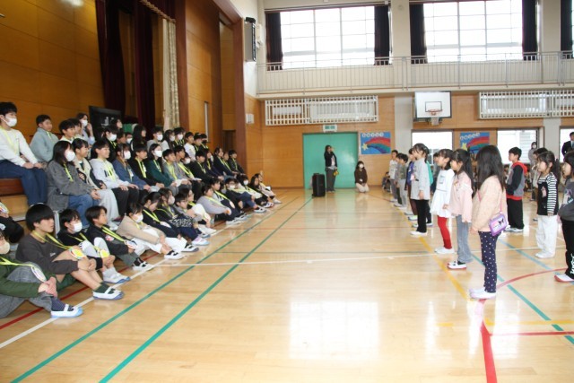 今日は月の浦小を引っ張ってくれたリーダーである6年生に感謝の気持ちを伝える「6年生を送る会」が行われました。6年生は1年生が思いを込めて作ったメダルを首からかけて入場しました。各学年からの出し物に6年生は嬉しそうに見ていました。最後は1年生から5年生が歌のプレゼントをしました。曲は6年生が運動会の表現で使った嵐の「♪カイト」。6年生は歌を聴きながら、運動会の演技で応えていました。心がほっこりする時間になりました。