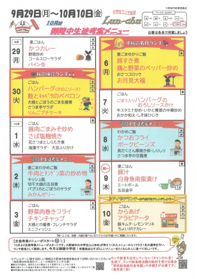 令和7年9月29日(月)~10月10日(金) ランチメニュー