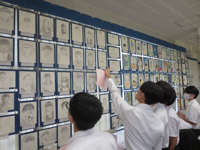 さすが大野中生,どの作品も見応えのある素晴らしいもので生徒たちは食い入るように鑑賞していました。