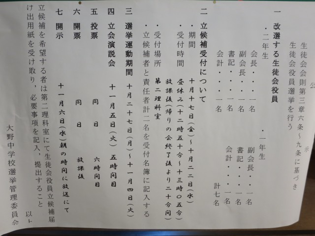 令和7年10月17日(金) 生徒会役員改選選挙:公示