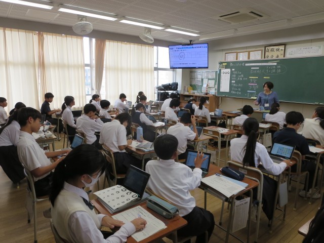 参観された先生方から、生徒の学習に取り組む姿を褒めていただきました。
