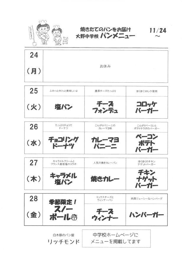 令和7年11月25日(火)~11月28日(金) パンメニュー