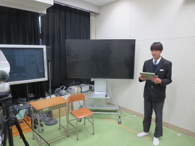 体育館が改修工事のため使用できないので,テレビ放送形式で行いました。
