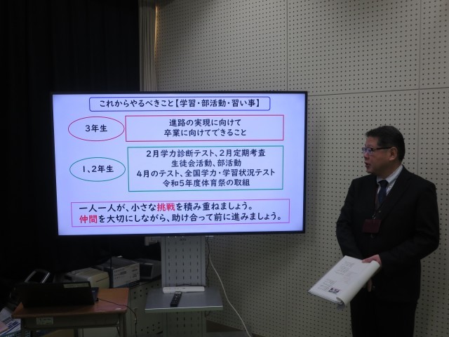 その後,生徒会長より各学年それぞれが3学期に頑張らなければならないことの話がありました。