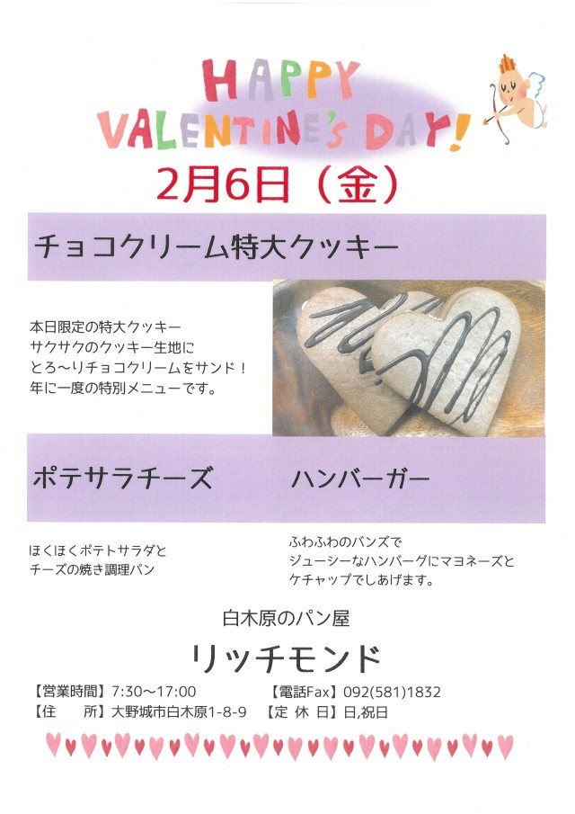 ・2月6日(金)は、スペシャルメニュー「チョコクリーム特大クッキー」