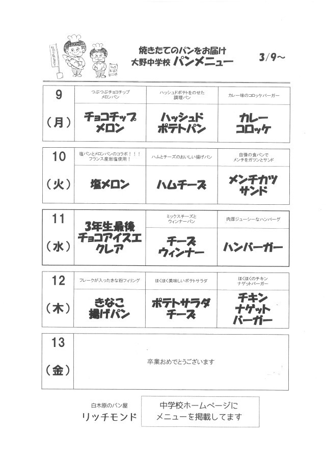 令和8年3月9日(月)~3月12日(木) パンメニュー