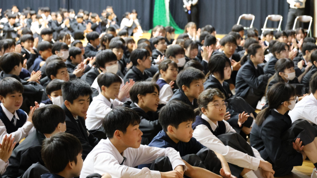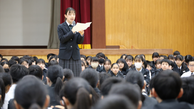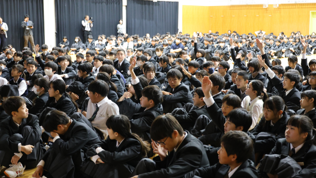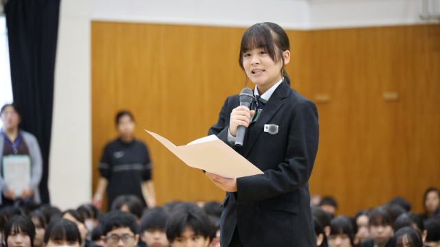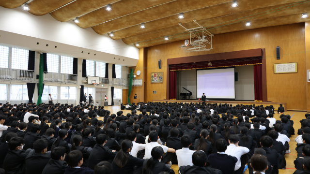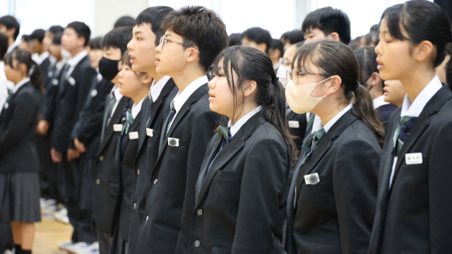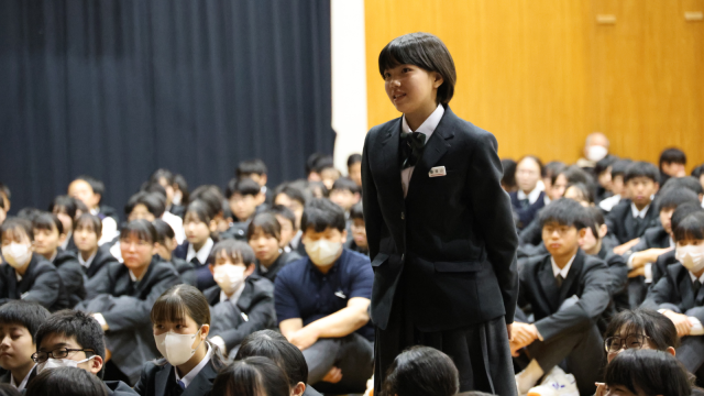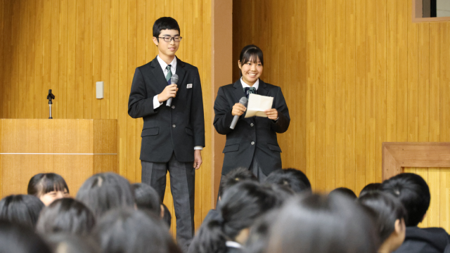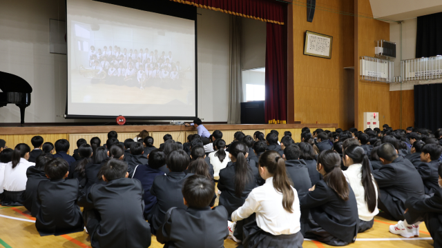 初めて一堂に会した全校生徒。1年生はちょっぴり緊張の面持ちでしたが、優しい先輩方のオリエンテーションで一気に不安が飛んで行ったようでした。