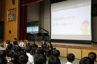 1校時の生徒会オリエンテーション・対面式では、生徒会執行部より各専門委員会の取組の説明、大野中学校の1日の学校生活について説明がありました。次に、部活動紹介の動画を全校生徒で視聴しました。そして、2・3年生が校歌を1年生に披露しました。