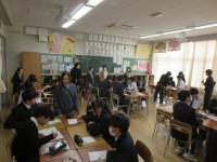 当初は体育館で実施する予定でしたが、熱中症予防の観点から「3年生は多目的室」「2年生はテレビ放送で各教室」で実施しました。