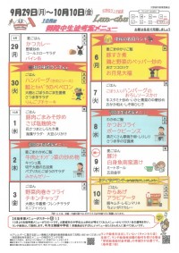 令和7年9月29日(月)~10月10日(金)のランチメニューです。9月30日は、...