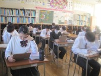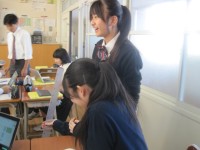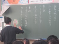 11月6日(木)、3年7組の国語の授業では、島崎藤村の「初恋」を班で読み味わっていました。班を見まわていると、木村先生の様子に「!」リンゴの木の絵がとても上手ですね‼!
