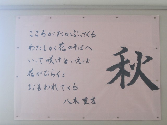 来週は「秋分の日」を迎えます。まだ暑い日が続きますが、気が付けば曼殊沙華(彼岸花)が咲いていました。校内の掲示板も「秋」を迎えました。