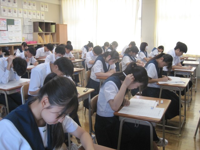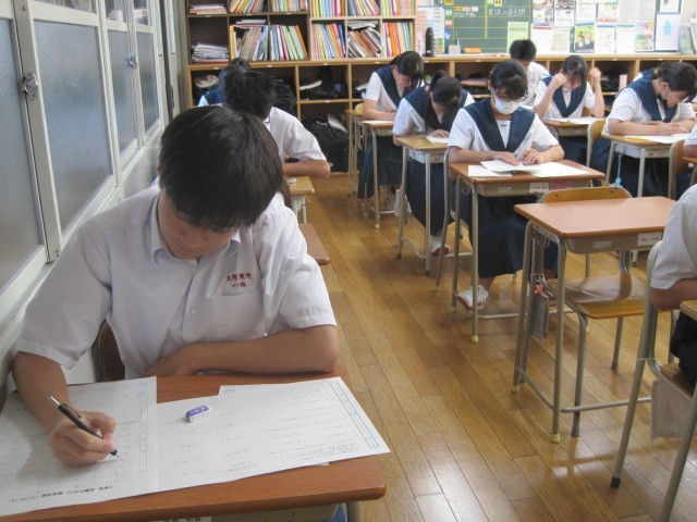 9月19日(金)、定期テストⅡ最終日です。3年生は、①数学、②社会、③技術・家庭の順番でテストを行います。