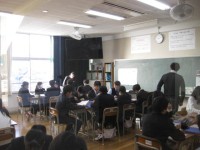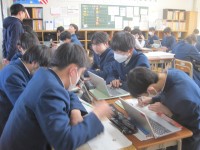 2年5組の音楽の授業が多目的室で行われていました。指揮者の生徒さんは、タブレットを見ながら練習に励んでいました。先生のアドバイスを取り入れ、さらにすてきなハーモニーに仕上げましょう!!