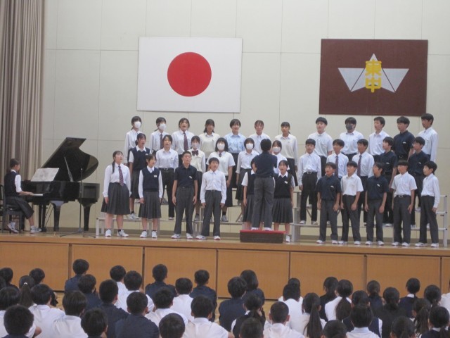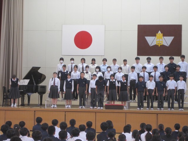 1年生の合唱リハーサルが1,2校時に行われました。初めての合唱コンクール。動きを各クラス確認し、気合入れをし、いよいよ歌います。本日はクラス順に歌いました。
