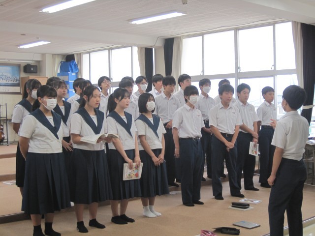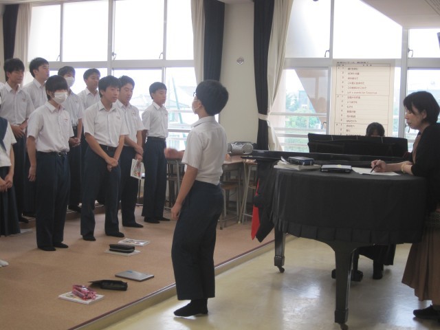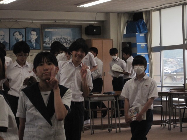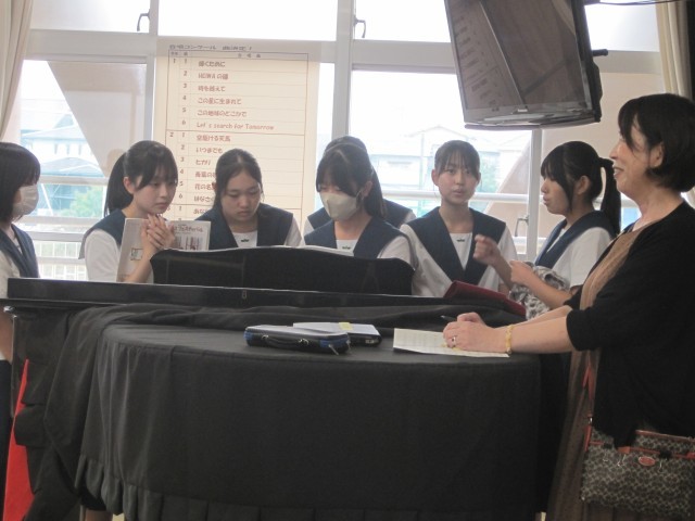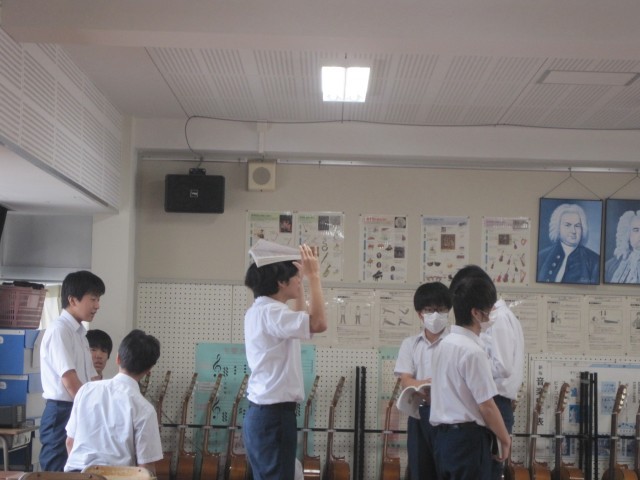 3年6組はリハーサル前に音楽室で練習しました。休憩の時に明るくポーズをとってくれました。