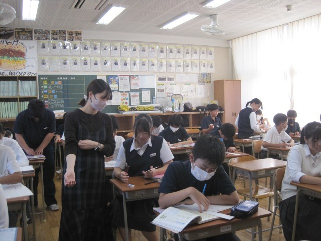 10月6日、2年2組の国語の授業で、自分たちが詠んだ短歌を清書しました。妹思いの優しいお兄さんだったり、楽しかった修学旅行を振り返ったり、一首、一首思いのこもった短歌でした。