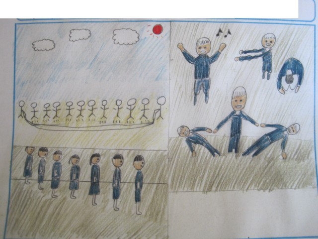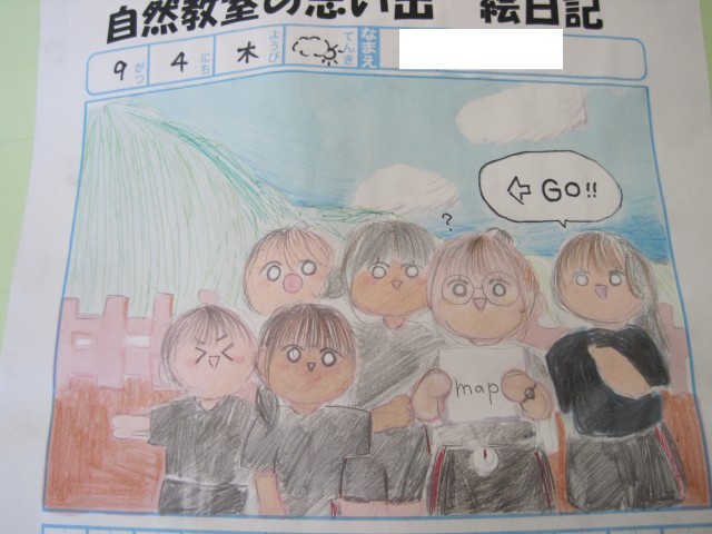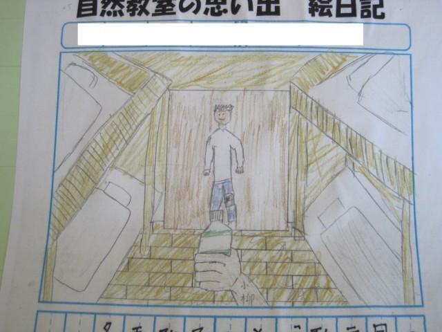 1年生は、自然教室の思い出の絵日記を作成したようで、掲示の準備が進められました。