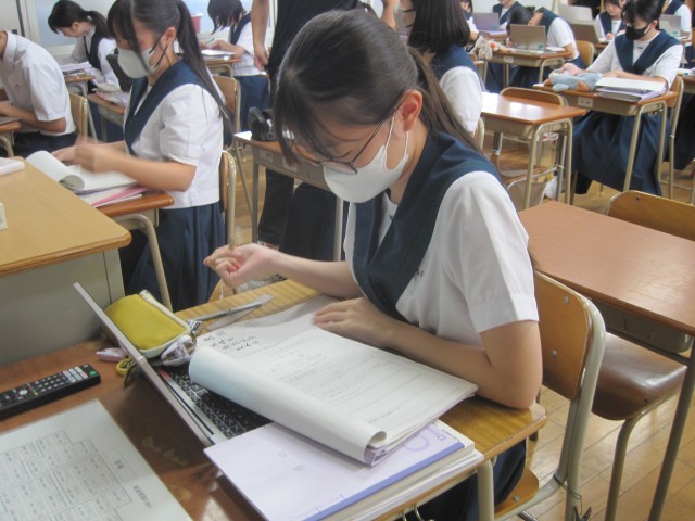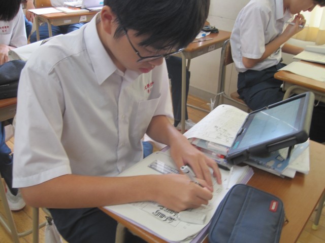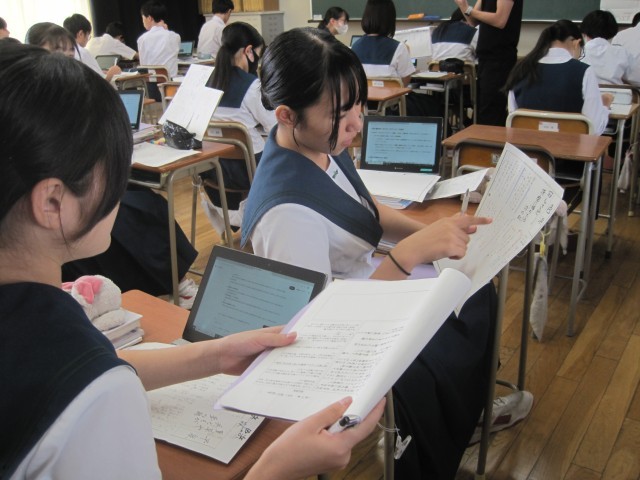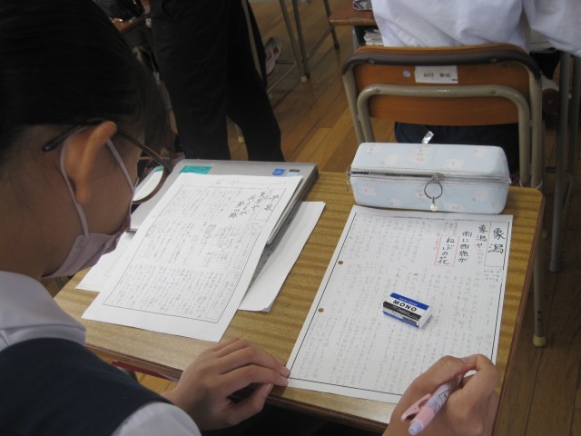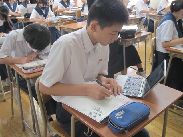 3年2組の国語の授業では、『おくのほそ道』のガイドシートを作成していました。友達に尋ね、確かめながら作成していました。