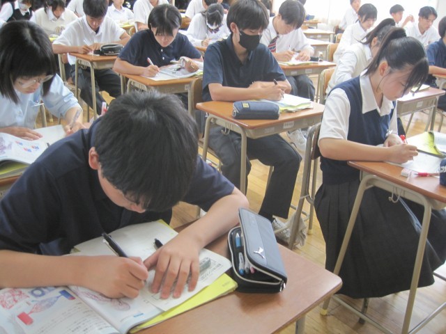 2年1組の理科の授業では、生活習慣病とはどんな病気なのかを考えるため、血液の流れを図式化していました。先生の説明を熱心に聞き、血液の流れを図式化していました。予防策をこれから考えるそうです。生活習慣病ゼロを目指しましょう!