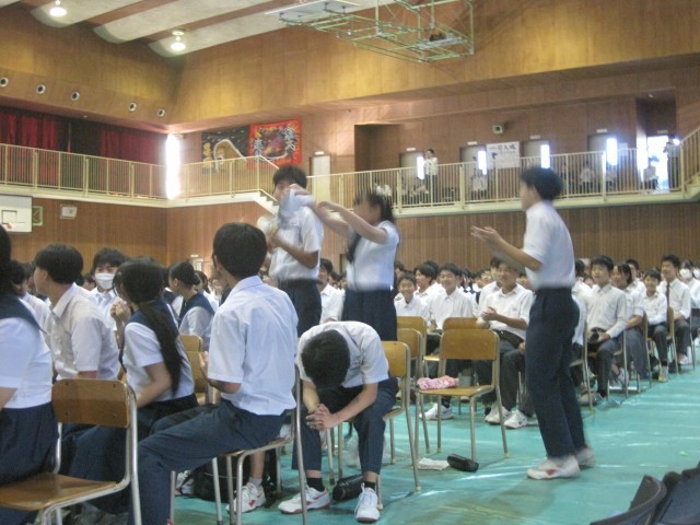 校長先生から「みなさんの歌声には人に元気を与えたり、勇気を与えたり、感動を与えたりするような力がある!」と話がありました。また、実行委員長の竹之内さんからは「クラスや学年で団結できたことをこれから活かしていってください!」と話がありました。