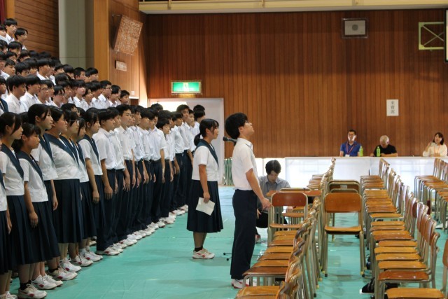 もちろん、午後からのステージ発表も素晴らしかった。吹奏楽部の演奏は先日の東コミでの演奏を越える伸び伸びとした演奏であったし、下村遥花さん、梶原菜々香さんの堂々とした「英語スピーチ」、荒牧侑那さんと池田龍之介さんの防災・減災について考えさせられた「被災地派遣研修発表」、江﨑正晴さんの障がいに対する差別や偏見について考える「弁論発表」…、皆さんの努力が感じられる素晴らしい発表でした。