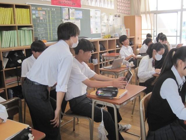 2年3組の英語の授業では、外国人留学生に日本のマナーやルールを伝えるプレゼンテーションづくりを行いました。イラストにもこだわっていました!さて、どのようなすばらしい作品が仕上がるのか、楽しみです!