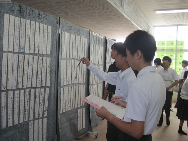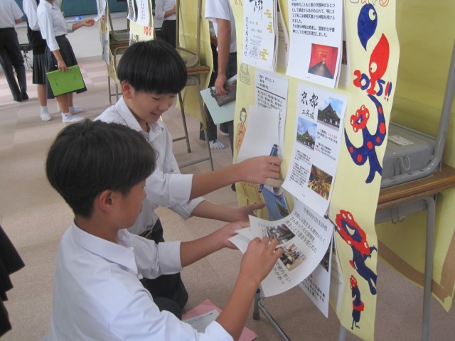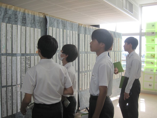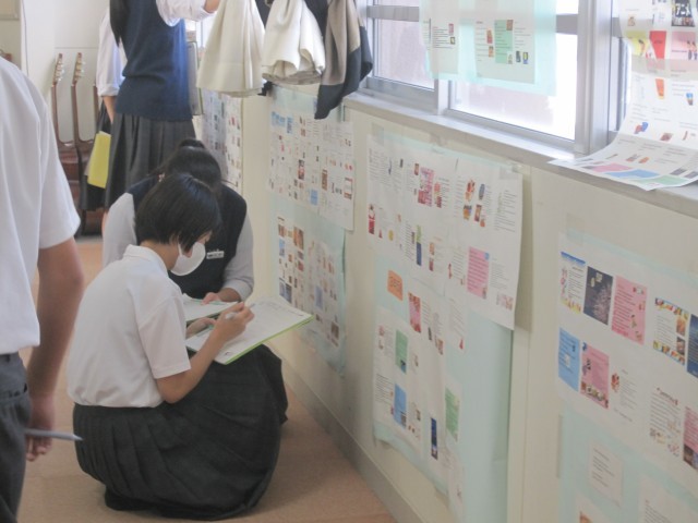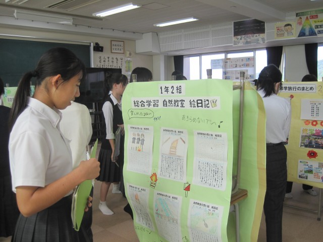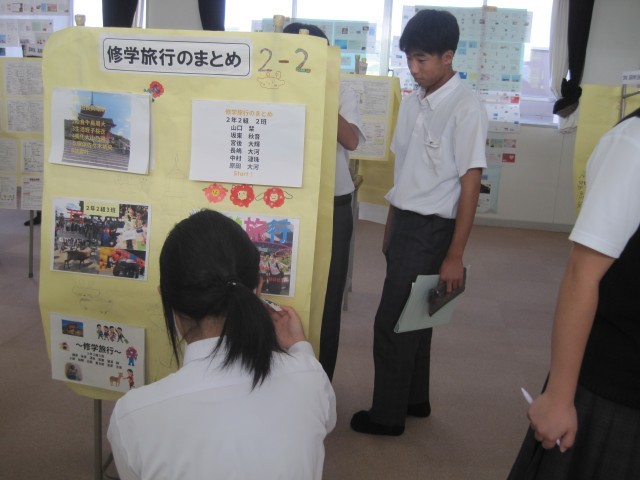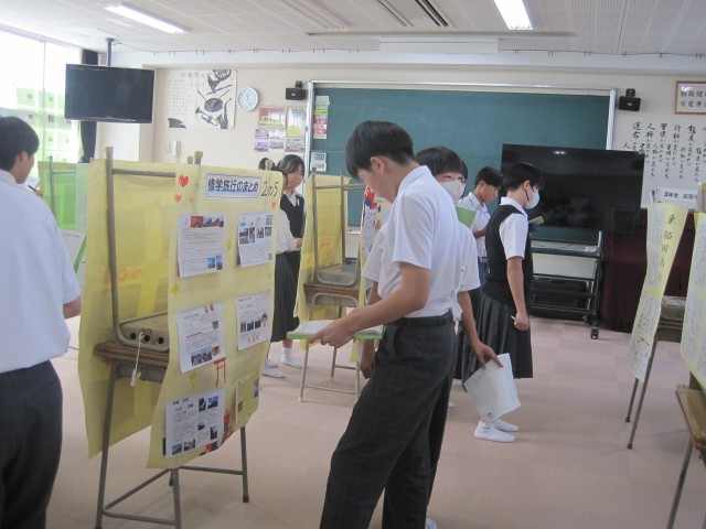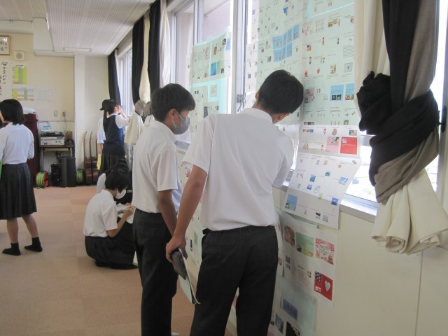 3,4校時は2年生が展示見学を行いました。写真は多目的室の様子です。たくさんの作品を鑑賞することができました。